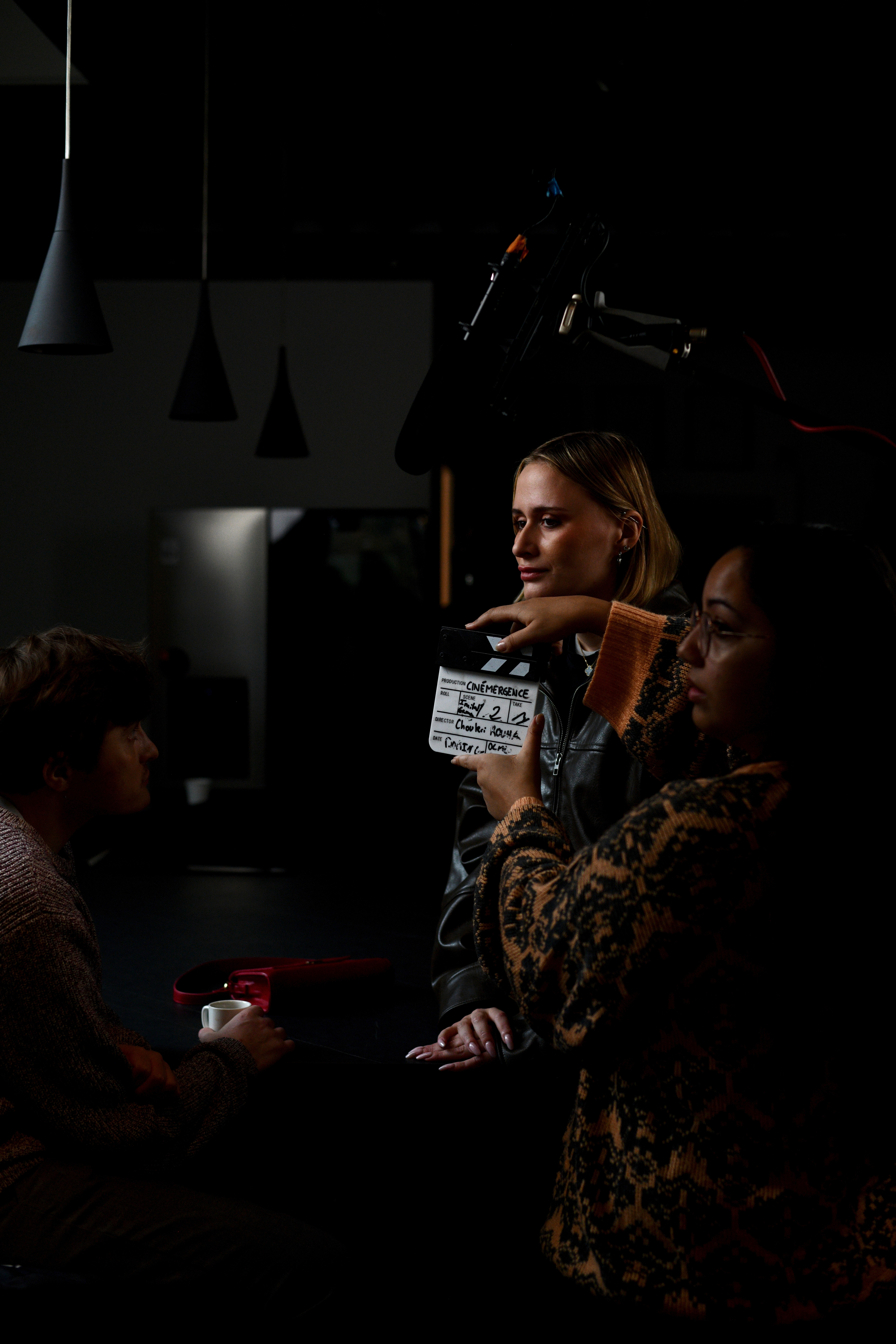 Les comédiens arrivent avec leurs scènes préalablement apprises, échangent avec leurs partenaires, travaillent leurs intentions et leur présence face caméra.